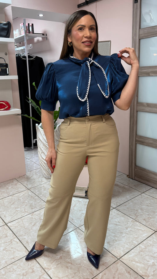 Navy Puff Sleeve Top