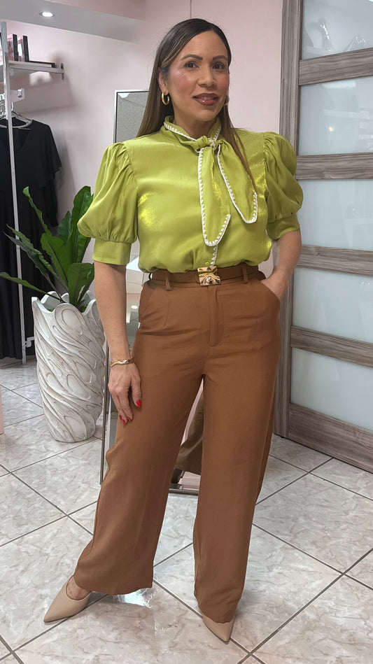 Lime Puff Sleeve Blouse