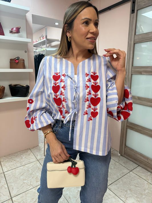 White/Blue Stripes with Hearts Top