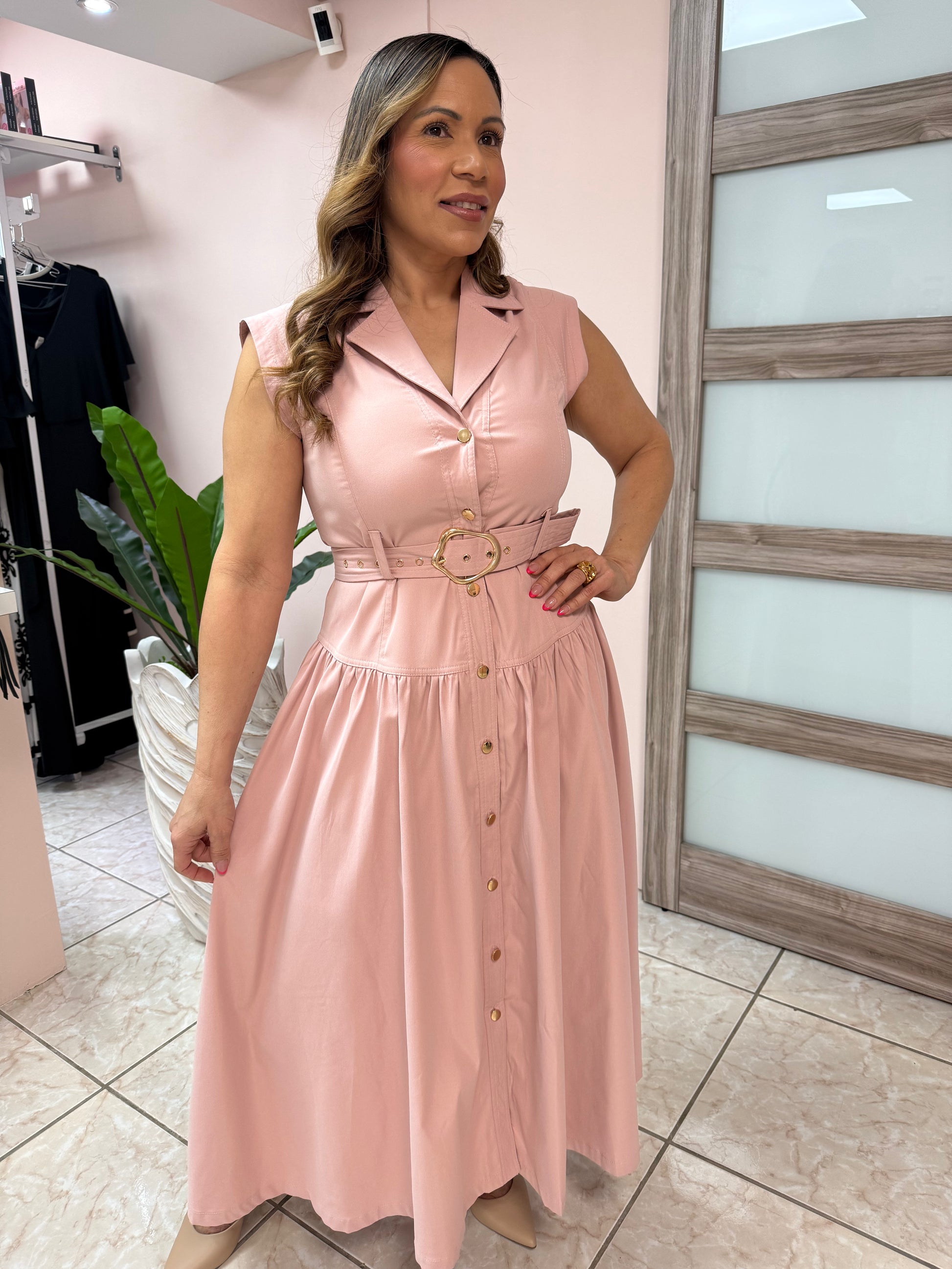 Lorena Blush Pink-Button Down Maxi Dress